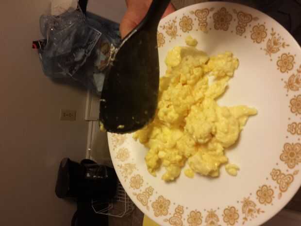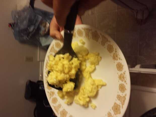 este es un desayuno comer todas las mañanas que es muy fácil de hacer.Paso 1: equipo de Lo que usted necesita:* Un pan* 2 huevos* Una espátula* Queso Cottage* Canela* Avena (opcional)Paso 2: Huevos revueltos Romper los huevos en la sartén y ponga la