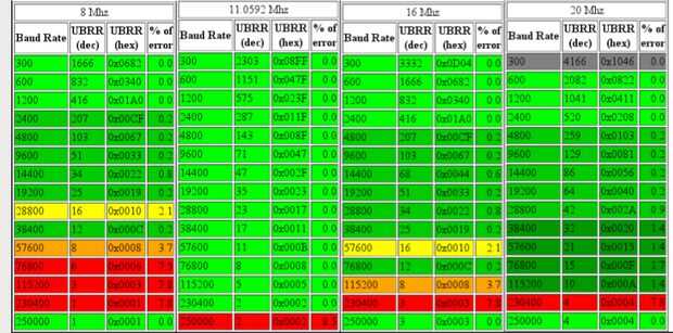 - utiliza 38400 ratio-tasa (que tiene margen de error de 0,2%) en lugar de la predeterminada 115200 (que tiene margen de error de 7,8%)