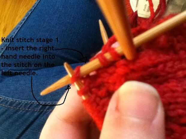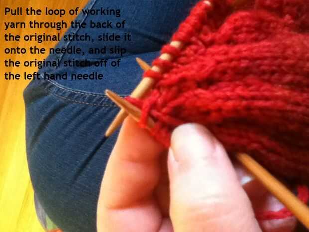 Con el hilo de trabajo en la parte posterior de las puntadas, insertar la aguja derecha en el frente de la puntada en la aguja de la mano izquierda y empuje la aguja de la mano derecha hacia atrás. El hilo de trabajo alrededor de la punta de la aguja de la mano derecha del lazo y tire de ella a través del lazo de la puntada existente. Una vez más, hay videos en el sitio enlazado arriba, y he puesto algunas fotos paso a paso en este instructable demasiado. Cuando con puntada punto, debería ver las filas de las formas de "V" o "N", según mire!