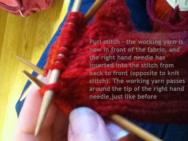 Purl es las contrapartes a tejer la puntada, pero para trabajar en la ronda (como en este proyecto), no es tan necesario saber - a menos que usted está usando algún tipo de estrías o incluso en una puntada. Para derecho, que necesita para empezar llevando el hilo de trabajo al frente. Esta vez, la aguja de la mano derecha se desliza en la puntada de la aguja izquierda existente desde la parte trasera y apunta hacia la dirección de las agujas. El hilo alrededor de la aguja de la mano derecha otra vez, y se la aguja lo tira a través a la parte posterior. Cuando se trabaja la puntada de la puntilla, verás figuras más pequeñas de la "U" en la tela.