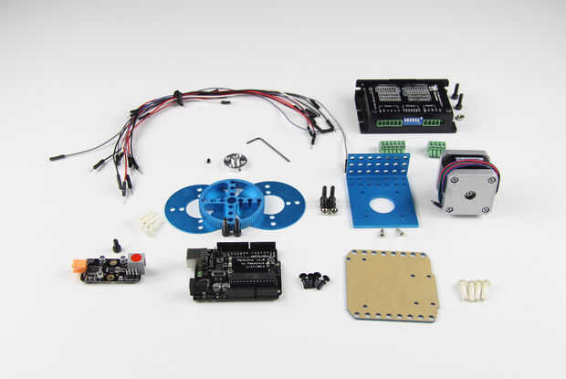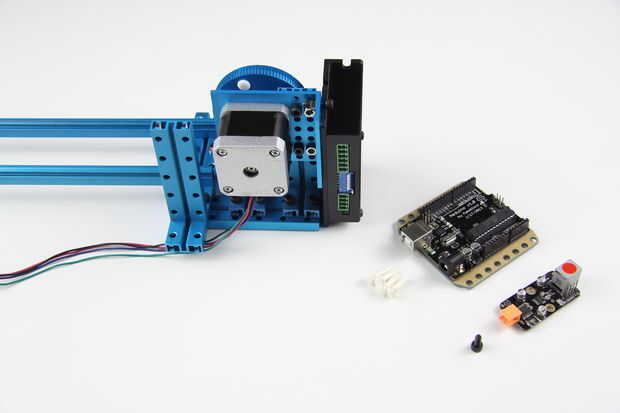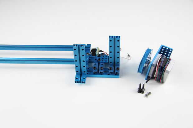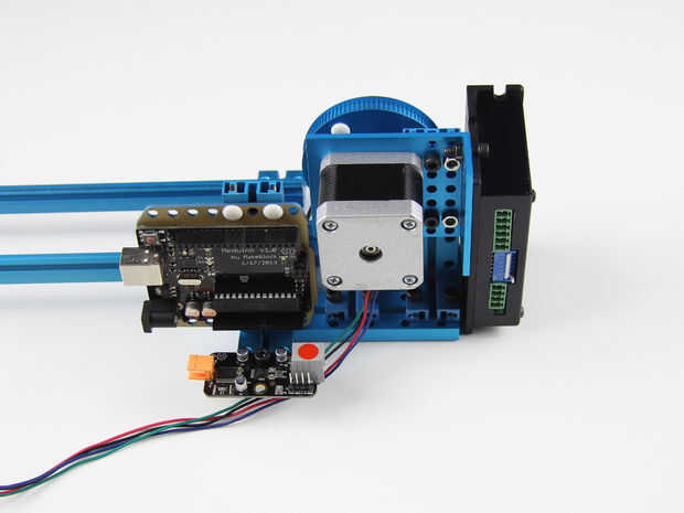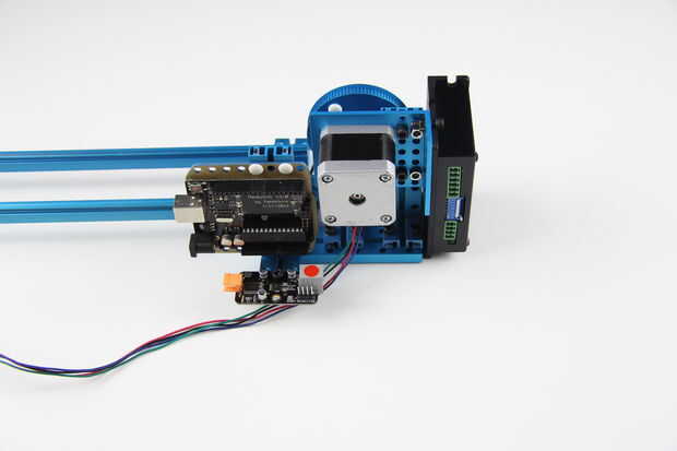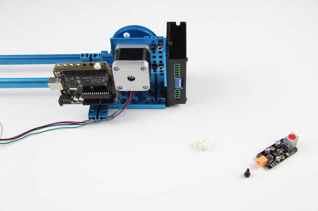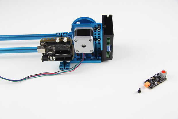 10. Ponga la manivela del cabrestante con el conector de eje de 4mm en el Motor de paso.