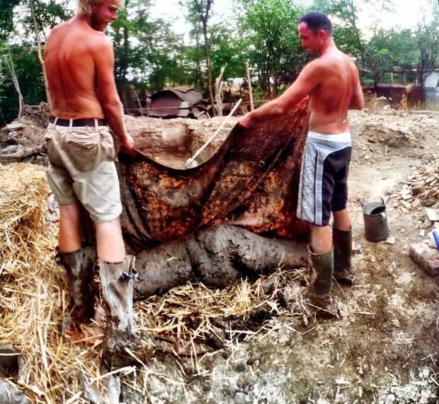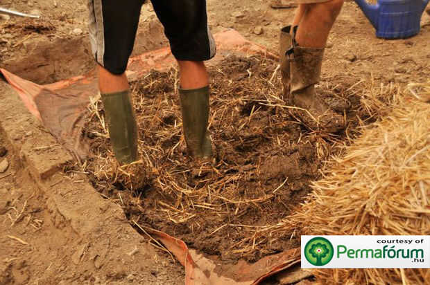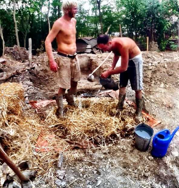 El resultado final es un revoque de arcilla de consistencia muy bien e incluso paja!