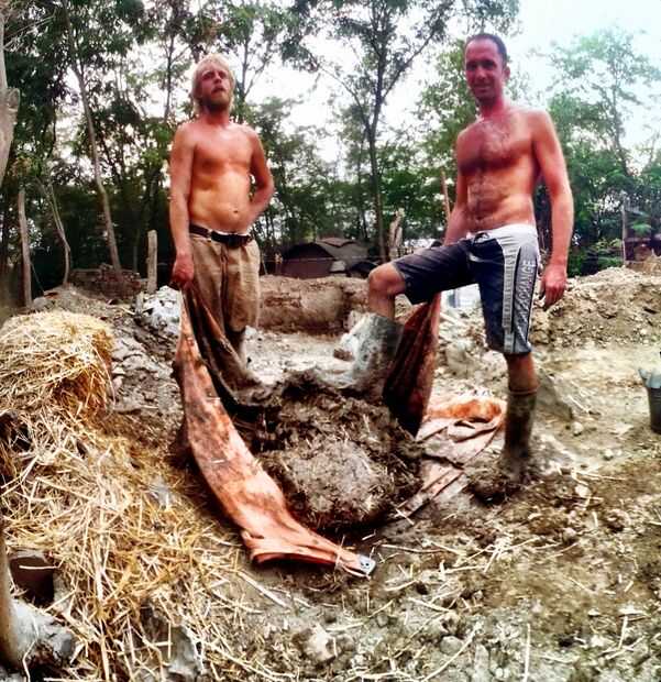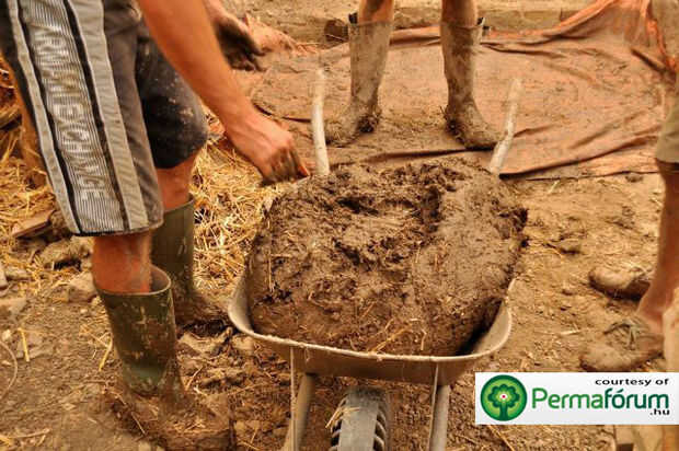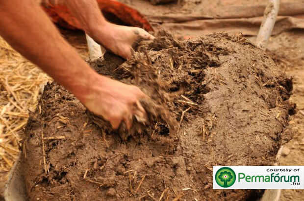 Se puede ver en las imágenes que la consistencia del yeso arcilla paja tiene una forma fuerte y un poco pesado en paja. Esta es la mezcla ideal para un yeso de paja bien aislado, durable y de larga duración! La paja actúa como aglutinante cuando se seca el yeso. Paja de mallas esencialmente el material como una web. Es importante tener muchas variaciones de longitudes de paja para asegurar resistencia a lo largo de la mezcla. Si puede hacer esto el resultado es un yeso que va a durar toda la vida en las paredes de su casa, alrededor de un estufa de cohete, o como una zona de estar tierra orgánica debajo de una azotea.