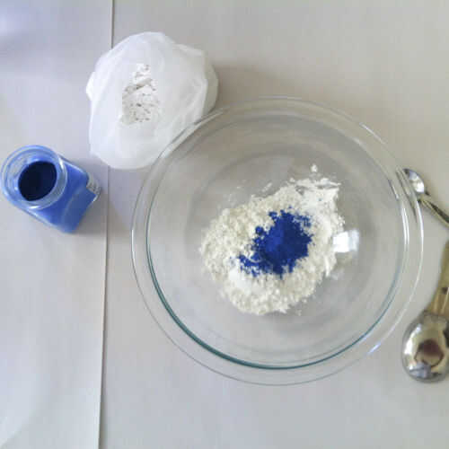 Añadir el pigmento a la tiza. Este color es el azul cerúleo, y utilicé 5 cucharaditas. Esta cantidad de pigmento se basa puramente en qué tipo de color que desee. Hacer no recomiendan usar algo más que una tiza 2 parte 1 parte de pigmento cuando primero intenta encontrar el color perfecto.