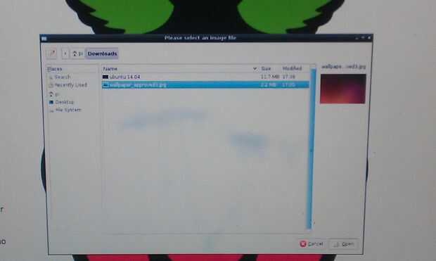 pcmanfm - escritorio-Pref. Golpe siguiente entrar y golpear el fondo de pantalla y busque cualquier previamente descargado Ubuntu wallpaper. Elegí 14.04, pero usted puede elegir lo que desea (Asegúrese de que es alta res o resultará pixelado).