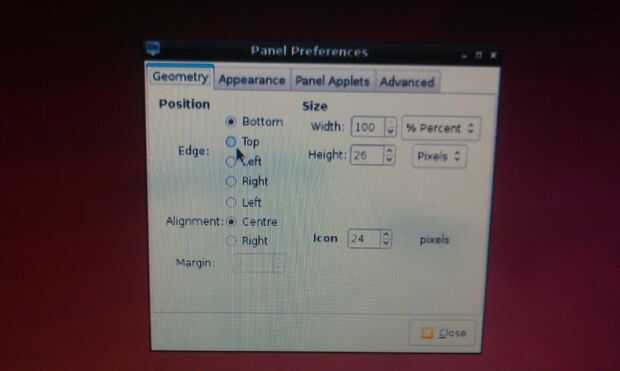 Haga clic derecho en el panel y van a la opcion que dice "Configuración del Panel" y haga clic en él. Vaya a la sección posición de la pestaña geometría y haga clic en la parte superior.