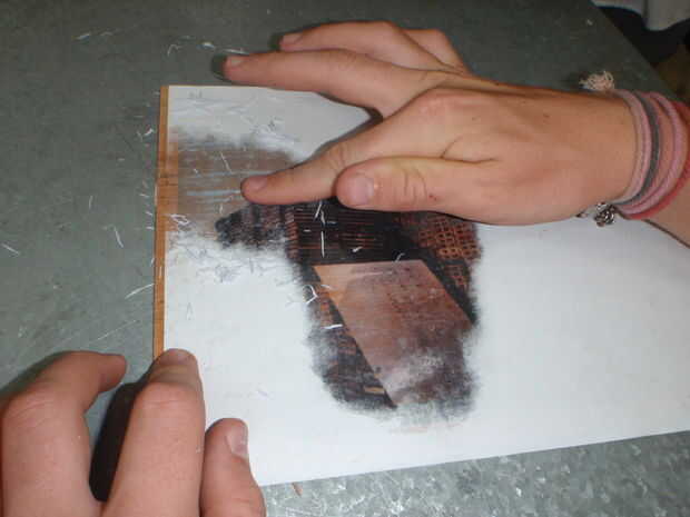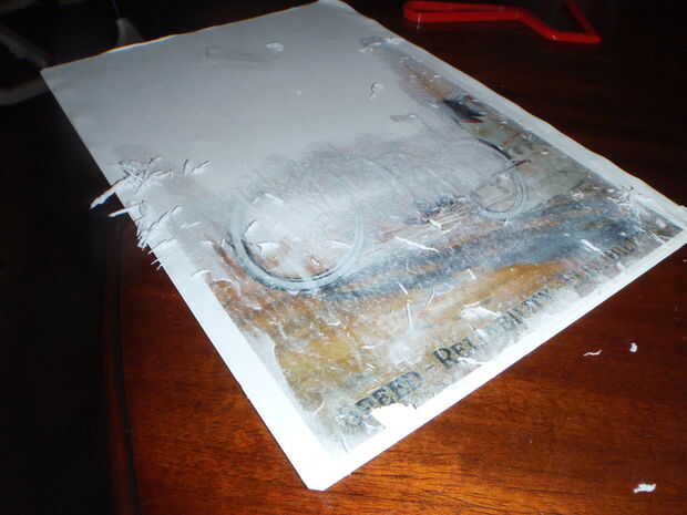 No es demasiado difícil y la imagen no tiene que ser perfecto, como se verá de todos modos. Probar y bajar más del papel, una vez que la imagen se ve bastante bien habían mojada esto es como se verá cuando termine. Dejar la muestra en el sol para secar la imagen volverá brumosa esto es normal.