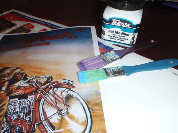 Sólo una nota en medio del gel de artista. Medio de gel se utiliza normalmente para este proceso probé en un signo y más difícil de usar que el pegamento que seca muy rápidamente y tuve grandes partes de la imagen salen. Comparar los colores y la calidad de la imagen había diferencias reales entre el gel y el pegamento y el gel era $20 para una tina pequeña de 250ml. En general estaba bastante decepcionado con el gel.