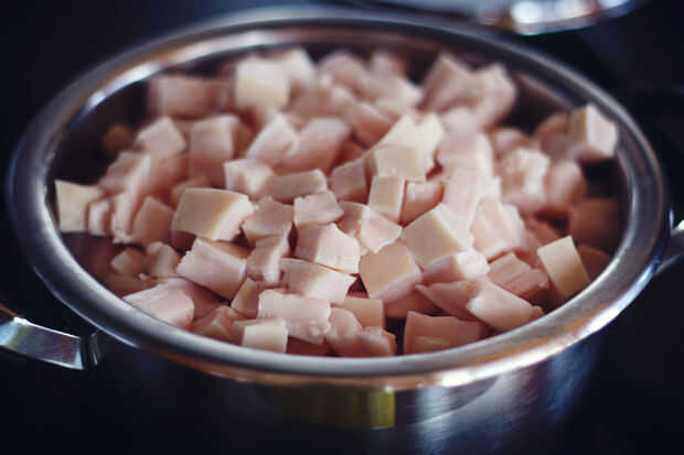 Paso 1: Primer paso: obtener la grasa de cerdo de preferencia y cortar en cubos pequeños