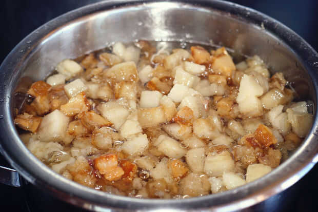Así que, no importa cómo usted decide hacerlo, todo lo que realmente tiene que hacer para hacer manteca de cerdo es calentar las piezas de la grasa a fuego lento.