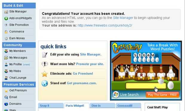 Hacer una cuenta en freewebs si se toma el nombre de su sitio web no te preocupes solo agregar un 2 al final de su sitio por ahora, es decir, las minas punkholy, si se toma lo llamaría punkholy2. (esta probablemente no será qué tipeen de personas cuando van a su sitio.
