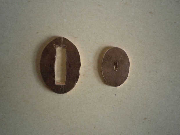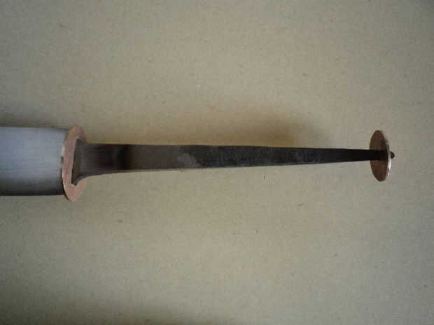 Taladro y los orificios de la espiga slip fit a un punto donde eres feliz. Es importante crear un bisel en el agujero de refuerzo posterior para que cuando usted remache hay cierto margen para el tang difundir y asegurar el agarre.