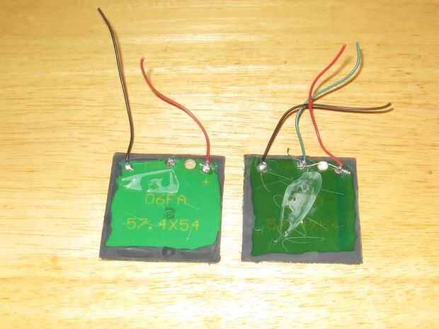 Algunas de las células solares tienen la fotovoltaica conectada a la celda solar, como este verde de células solares. Se puede remover por desoldar las conexiones.