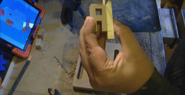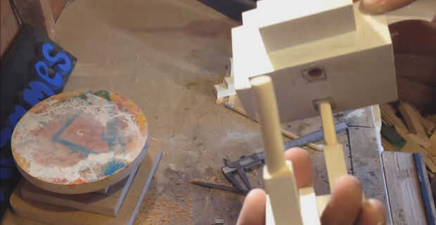 Los pies fueron cortados hacia fuera usando 12mm MDF, su básicamente a capaz, (ver imágenes). Cada pie (2.2 x 4.5 x 1.2 cm)