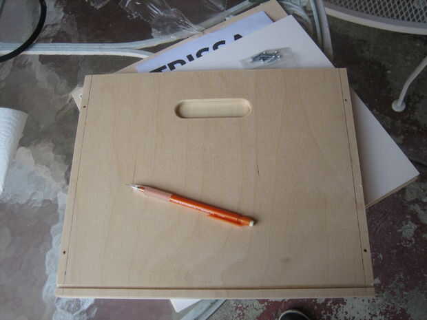 El fondo también necesita perder algunos circunferencia que comienza como una pulgada cuadrada de 13 y 1/4. Un lado debe ser hackeado hasta 12 y 1/2 pulgadas.