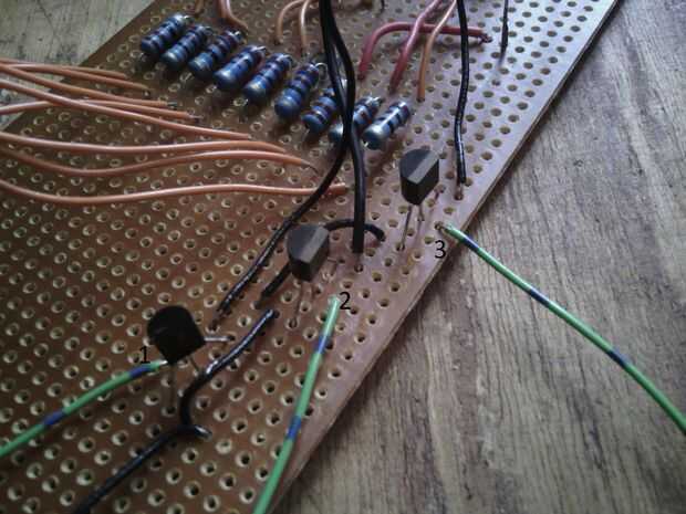 1. La soldadura de los cables de cada resistor. Estos cables se conectarán a arduino digitales pins 2-10.