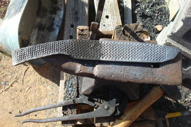 Primero usar mi hotcut resistente para cortar una esquina, luego comenzar a forjar la punta desde allí. me permite obtener la punta sin tener desgarres un poco buscando algo. ángulo de tus golpes de martillo para golpear más duro más cerca de la punta. y prestar mucha atención a él mientras se forja, no desea el tornillo hasta la punta, si tienes que cortar entonces has perdido longitud de la hoja precioso.