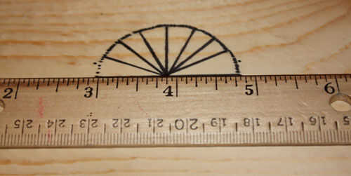 4. justo al lado de la línea central (diámetro) del círculo, trace una línea de 1 1/2 pulgada hacia afuera de