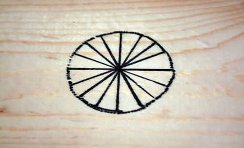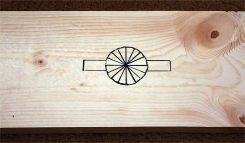 1. en la superficie de la madera, dibuja un círculo que tiene un diámetro (ancho de centro) que es un poco menos