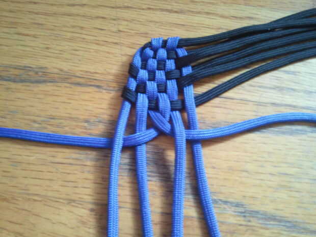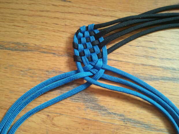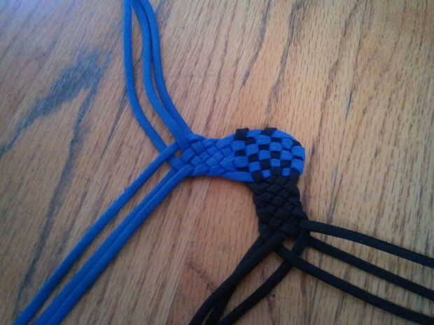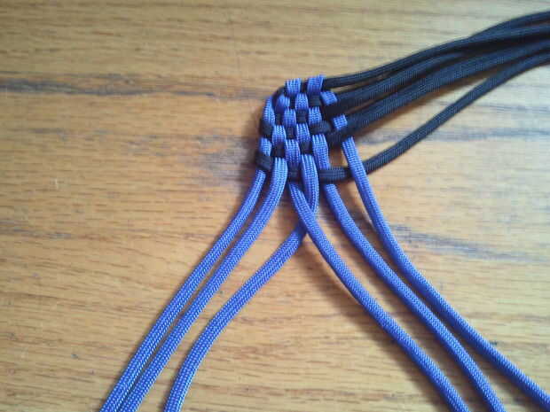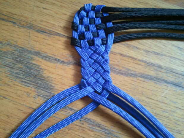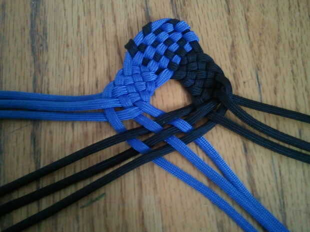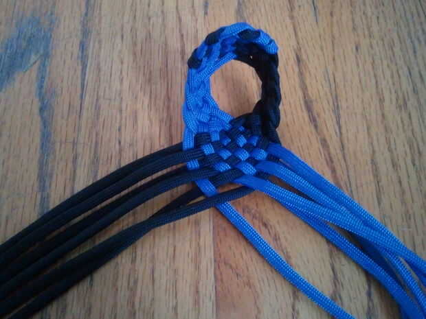 Para el lazo de guardián del stockwhip, iniciar una trenza de diamante como antes.