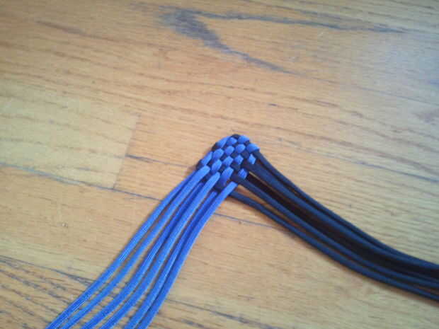 Luego determinar el número de hebras en su superposición (por ejemplo, 12) y el número de hebras que desea llegar al final (6 es el máximo normalmente uno desea, incluso en látigos de 14 o 16-strand). Por ejemplo, 6.