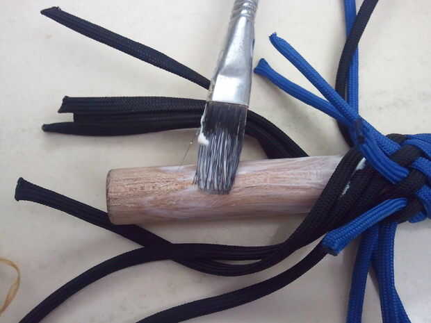 Luego se unen los hilos base hasta el pegamento con los tendones. Pegamento de los hilos superiores a ellas y se unen a la base.