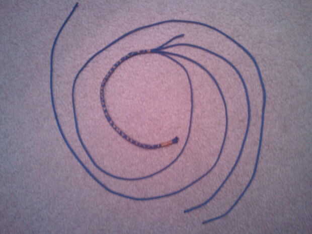 Para el snakewhip, cortar 2 hebras, 1 x 72", 1 x 54". Utilizar las 2 piezas de ballcord y atar al igual que en el stockwhip.