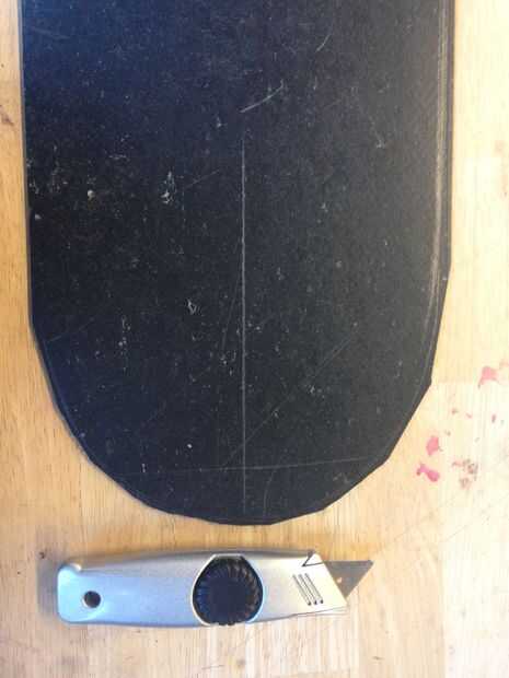 • Colocar el patín en el linóleo y el empate del alrededor de los bordes. (imagen 1-3)