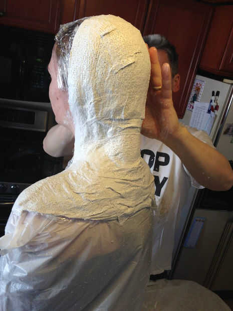 Romper su gasa de yeso y empezar a cubrir la parte posterior del cráneo. Mucha gente continuará utilizando alginato alrededor de la parte posterior de la cabeza, pero si no tienes la gasa de yeso materiales funciona bien. Sin embargo, causará más lijado final.