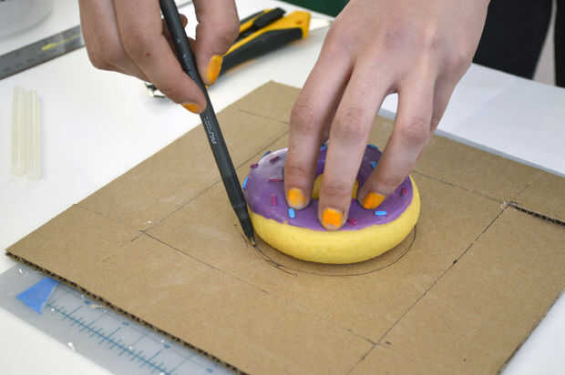 "Empecé por traza la forma del objeto. Desea que las paredes del molde [mayor que el objeto original]. Desea anotar, y entonces obviamente se desea cortar.