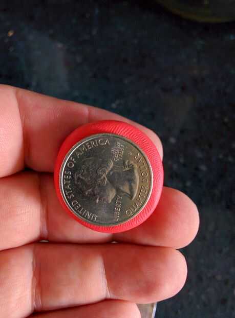 Tomar la pelota y aplanar en un disco un poco más grande que la moneda que desea hacer una impresión de.