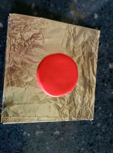Coloque el disco sobre la lámina y aplanarla. Utilicé un marcador sharpie, pero hará cualquier cosa cilíndrica lisa.