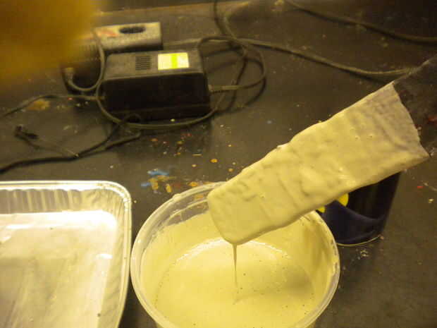Si un objeto más grande de fundición, ultracal al grueso de un batido de la mezcla y pincel en medio del objeto de arcilla enterrado a un costado de la presa de arcilla. Construir hasta media pulgada de grosor en el punto más delgado.