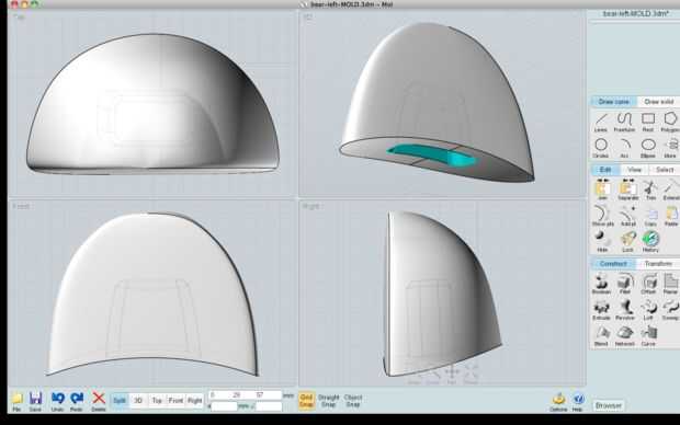 En primer lugar, asegúrese de que tiene un objeto "sólido", en lugar de las superficies contiguas. El objeto debe ser teóricamente-a prueba de agua. Guardar como un archivo nuevo (acabo de llamar mina ' originalname-3 molde dm'). A continuación, considerar la orientación del molde. No tiene que ser impreso tal que el objeto está en su posición vertical esperado, puede ser en cualquier ángulo que sea adecuado para la fundición. ¿Tiene un fondo plano, que puede hacer un molde de una sola pieza, o necesita una línea de partida, la Unión donde el molde se desintegraría para extraer el bastidor? Si es así, ¿Dónde está el mejor lugar para él? En general debe ser en la parte más ancha del objeto, y a menudo es más fácil extraer el bastidor si la línea divisoria corre más o menos a lo largo de la longitud, en lugar de anchura o altura del objeto. Si tiene contrasalidas en el objeto, importantes áreas cóncavas, considerar colocar la línea divisoria a través o cerca de éstos. Colocación de línea de despedida bueno es un poco de arte.