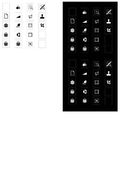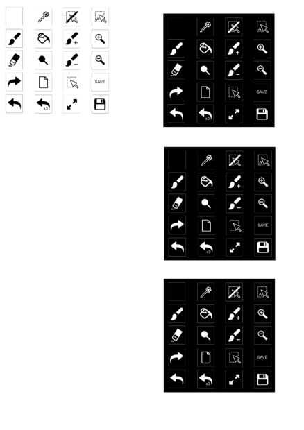 Imagen de Google de búsqueda cada función que usted desea. He utilizado términos como "icono de cubo de relleno" y "icono de pincel", etc.. En ningún momento tienes una colección de todos los botones.