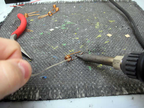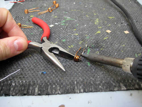 Las patas de la bobina requieren de estañado para quitar el esmalte y preparar la superficie para soldar en una tarjeta.