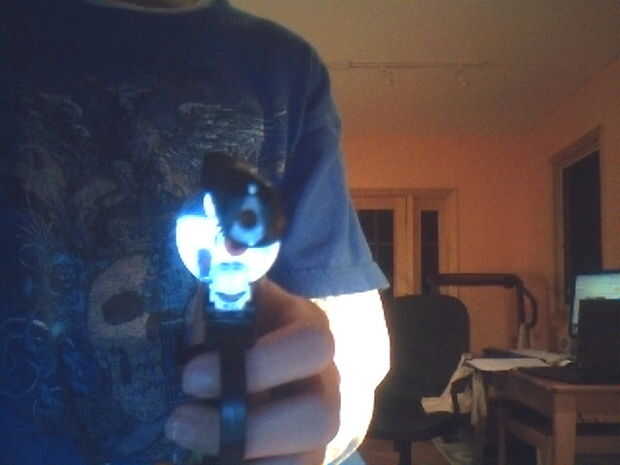 Tomar un pequeño anillo de metal, como se muestra en la imagen y cinta en el cañón. Tenga cuidado de no dejar la bb desde el rodaje, u otra costumbre shoot(obviously)