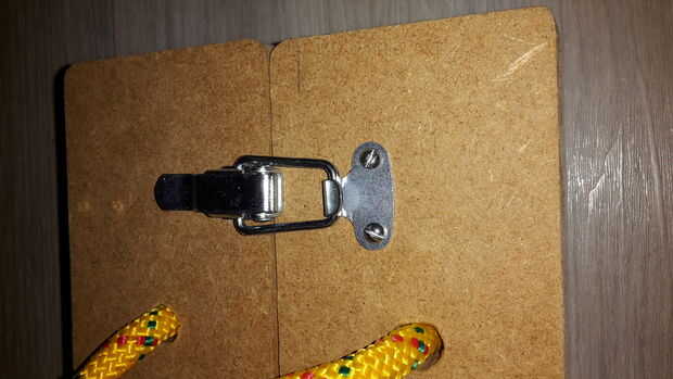 Fije dos broches en la parte superior del tablero en cada extremo y un broche en la parte inferior del columpio donde están los pernos de anilla. Ahora puede tomar su swing en cualquier parte sin ella cayendo a pedazos.