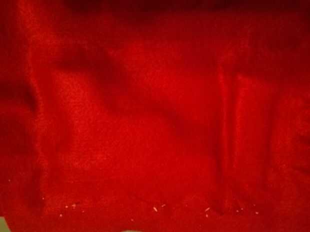 El relleno en el fieltro del centro y luego insertar los artículos, o el cartón que se corta de las aberturas, en las aberturas, empujando luego hacia abajo contra la capa base. Manteniendo los elementos hacia abajo, tire de los bordes de fieltro para suavizar las arrugas. Una vez cosas ajustadas, usted necesitará colocar una hoja de cartón u otro material plano, rígido en la parte superior y girar todo el conjunto hacia abajo, para que pueda obtener acceso a la parte posterior. Ahora, retire con cuidado el relleno, para dejar al descubierto la parte trasera de fieltro.