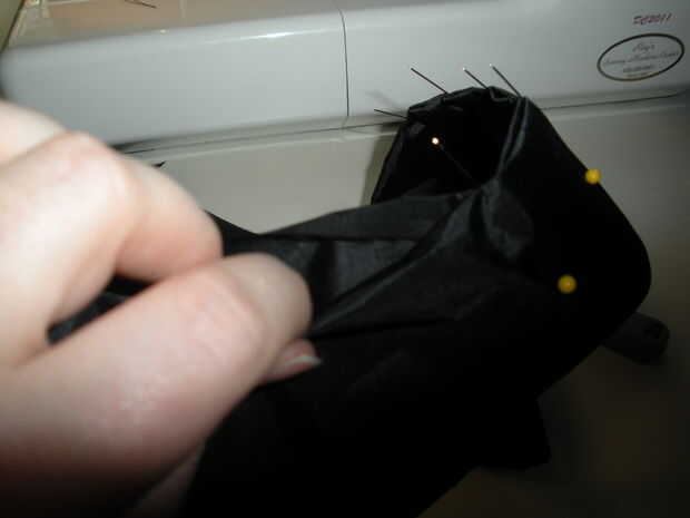 Esto es donde cada uno de los lados sin terminar de la tela y doblar ellos dentro de los mangos por lo menos un 1/4" por lo que al ejecutar su costura a lo largo, la máquina será capturar todos las capas y darle una buena limpia acaban borde.