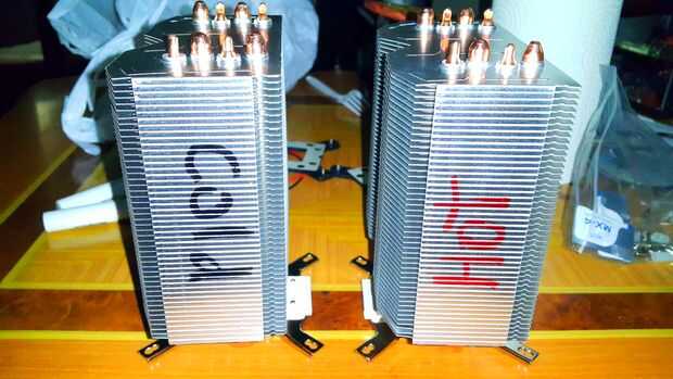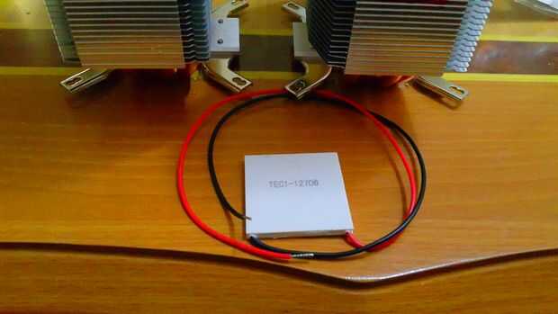 Heatpipe disipadores de calor son muy buenas en el enfriamiento de la CPU (los 2 en la foto puede manejar 160 Watt TPD fácilmente) por lo que son perfectos para la refrigeración de chips Peltier 40mm. Usé un 6A 12 voltios nominal Peltier para este proyecto.