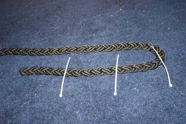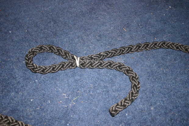 A continuación, mantener esta longitud separadas, formar un bucle en la cuerda a través del cual puede caber fácilmente de la mano. Cuando esté satisfecho con el ancho del bucle y la longitud de la empuñadura, ate las dos piezas con uno de los amarres de cable.