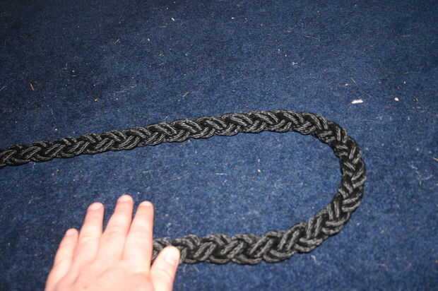 Lo primero que debemos hacer es medir la cuerda que vamos a utilizar. Primero usa tu mano para medir aproximadamente tres palmwidths desde el extremo de la cuerda, esta longitud va para formar el mango de la manija, más adelante nos será ser empalmar el trabajo final a través de él.