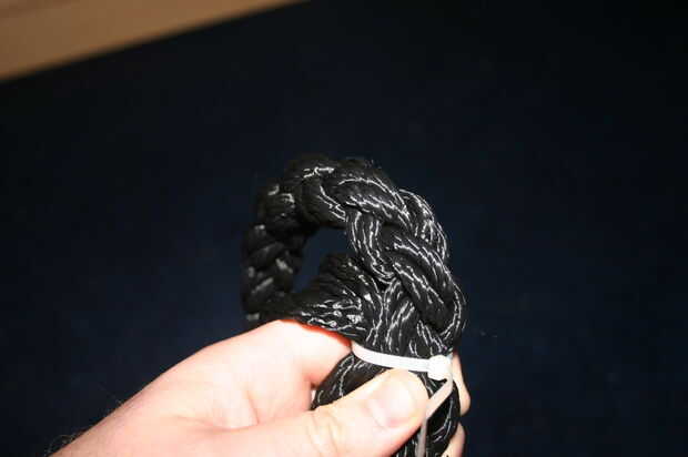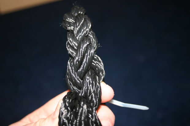 -Utilizando su cocina brocheta (o marlinspike), abre la trenza, formando un agujero. Asegúrese de que el pincho pasa limpiamente entre los filamentos y que no atoren les cuando pasa a través.