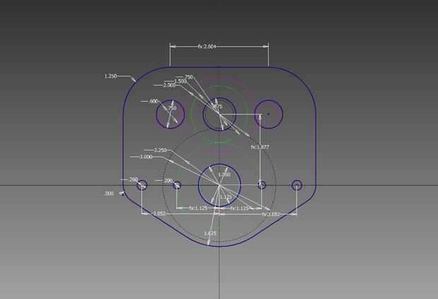 Diseñé mi caja de cambios totalmente en Autodesk Inventor antes de comprar una sola pieza. Empecé eligiendo un cociente del engranaje (que usted puede aprender más acerca de ella) y luego aseguró que no habría ningún problema de espacio entre las partes rotativas mediante el dibujo se muestra en la segunda foto. Este bosquejo también me ayudó a definir la forma exacta de las placas de la caja de cambios. A partir de ahí, he diseñado el resto de la caja de cambios, parte por parte. Durante todo el proceso de diseño, tenía que asegurarse de que podría hacer cada parte que diseñé en las herramientas a mi disposición.
