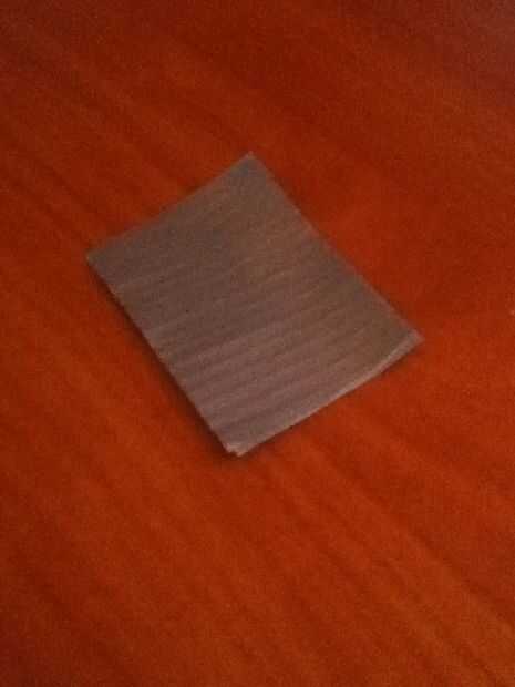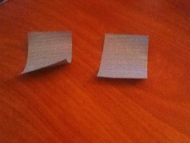 Corte dos pedazos de 2 pulgadas de conducto de cinta y peguen las partes adhesivas. Cortar en forma de ojo, recordar dejar un punto en el extremo. Hacerlo de modo que no es absolutamente tan alto como la cinta del conducto es amplia, para un paso posterior.