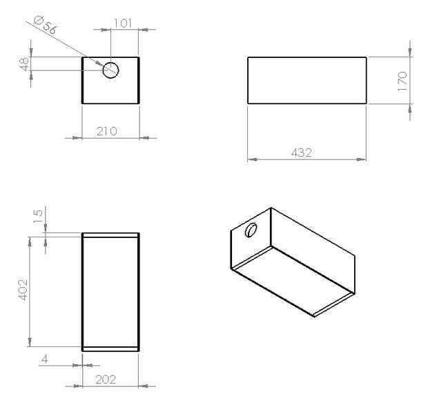 OBS! -El dibujo no ajusta a las dimensiones reales! Las placas laterales son IRL de 3mm y 4mm en el dibujo.
