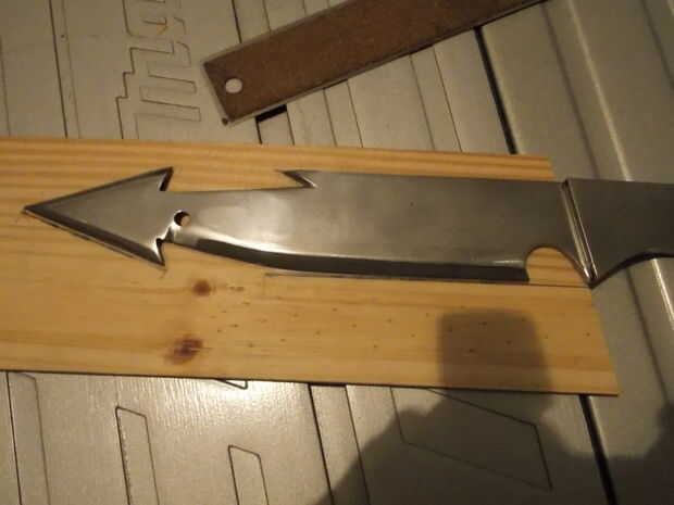 Paso 2: Coloque la hoja del cuchillo en el centro y trace una línea alrededor de la hoja para obtener la forma. Realice los cambios apropiados a las líneas para asegurarse de que el cuchillo puede resbalar dentro y fuera de la vaina.