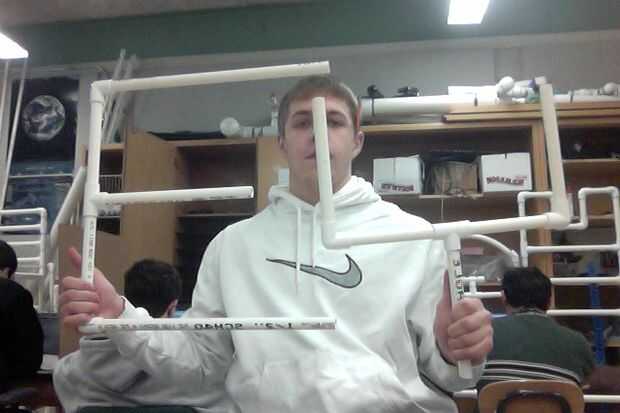 de la V se necesita:-12 en PVC (2)-codo de 90 gradosPara la R se debe:-pipa 12 en PVC (2)-tubo 6 en PVC (5)-tubo 3 en PVC-90 grados de codo (3)-T (2)-codo 45 gradosPaso 1: A partir de la V -Cortar un tubo de PVC para ser 15 en de largoPaso 2: Parte i