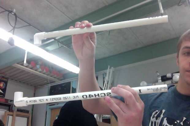 de la V se necesita:-12 en PVC (2)-codo de 90 gradosPara la R se debe:-pipa 12 en PVC (2)-tubo 6 en PVC (5)-tubo 3 en PVC-90 grados de codo (3)-T (2)-codo 45 gradosPaso 1: A partir de la V -Cortar un tubo de PVC para ser 15 en de largoPaso 2: Parte i